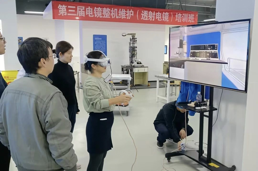 第三屆電鏡整機(jī)維護(hù)(透射電鏡) 培訓(xùn)班圓滿落幕 結(jié)業(yè)儀式現(xiàn)場 本屆培訓(xùn)班銳意創(chuàng)新、亮點(diǎn)突出,內(nèi)容涵蓋了透射電鏡的基本原理、結(jié)構(gòu)組成、日常維護(hù)、故障診斷與排除等多個(gè)方面,并通過虛擬現(xiàn)實(shí)(VR)技術(shù),體驗(yàn)未來電鏡操作的新場景。課程以“實(shí)操”和“實(shí)用”為首要標(biāo)準(zhǔn),將課堂講授、現(xiàn)場體驗(yàn)有機(jī)結(jié)合,靈活運(yùn)用學(xué)習(xí)研討、雙向交流等多種教學(xué)手段,幫助學(xué)員達(dá)到優(yōu)化知識(shí)結(jié)構(gòu),提高解決問題的能力。 培訓(xùn)現(xiàn)場 培訓(xùn)過程中,學(xué)員們積極參與,就工作中遇到的實(shí)際問題與講師展開了熱烈的討論。在實(shí)踐操作環(huán)節(jié),學(xué)員們?cè)诶蠋煹闹笇?dǎo)下,實(shí)操練習(xí)透射電鏡鏡筒、控制臺(tái)拆裝以及電鏡整機(jī)安裝,同時(shí),通過沉浸式體驗(yàn)河南元宇宙儀器有限公司(菲泰姆)研發(fā)的虛擬現(xiàn)實(shí)(VR)電鏡拆裝項(xiàng)目,進(jìn)一步加深了對(duì)電鏡結(jié)構(gòu)的理解。學(xué)員們紛紛表示,此次培訓(xùn)內(nèi)容豐富詳實(shí),理論與實(shí)踐緊密結(jié)合,有較強(qiáng)的培訓(xùn)獲得感。 透射電鏡鏡筒拆裝現(xiàn)場 體驗(yàn)虛擬現(xiàn)實(shí)(VR)電鏡拆裝項(xiàng)目現(xiàn)場 本次培訓(xùn),在中國材料與試驗(yàn)標(biāo)準(zhǔn)平臺(tái)及全國分析檢測人員能力培訓(xùn)委員會(huì)(CSTM/NTC)的指導(dǎo)下,對(duì)培訓(xùn)內(nèi)容和規(guī)范化進(jìn)行了優(yōu)化,學(xué)員培訓(xùn)合格后獲得相應(yīng)的國家級(jí)證書。 在培訓(xùn)班結(jié)業(yè)儀式上,河南化工技師學(xué)院副校長趙繼高,微束科技集團(tuán)董事長、中鏡科儀集團(tuán)董事長郭新勇,浙江大學(xué)研究員洪健,河南化工技師學(xué)院教授管錚、實(shí)驗(yàn)技術(shù)學(xué)院院長魏葆婷,上海大學(xué)工程師寇春合共同為學(xué)員們頒發(fā)了結(jié)業(yè)證書。 頒發(fā)證書合影留念 本屆培訓(xùn)班,為學(xué)員們搭建了學(xué)習(xí)交流的平臺(tái),促進(jìn)了電鏡維護(hù)技能的提升。期待更多青年學(xué)者加入到電鏡技術(shù)研究中,為我國科研事業(yè)的發(fā)展注入新的活力。 合影留念