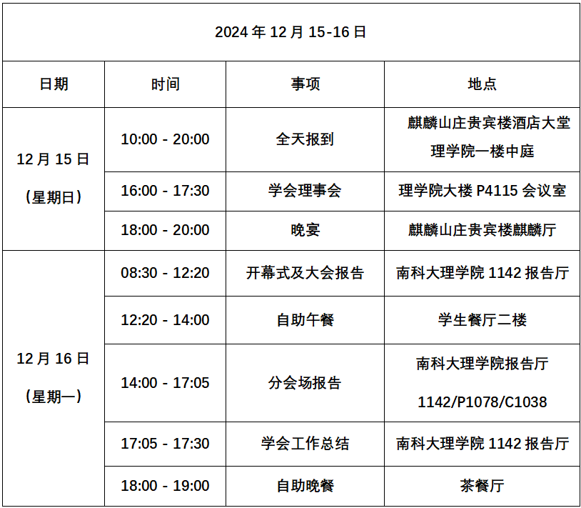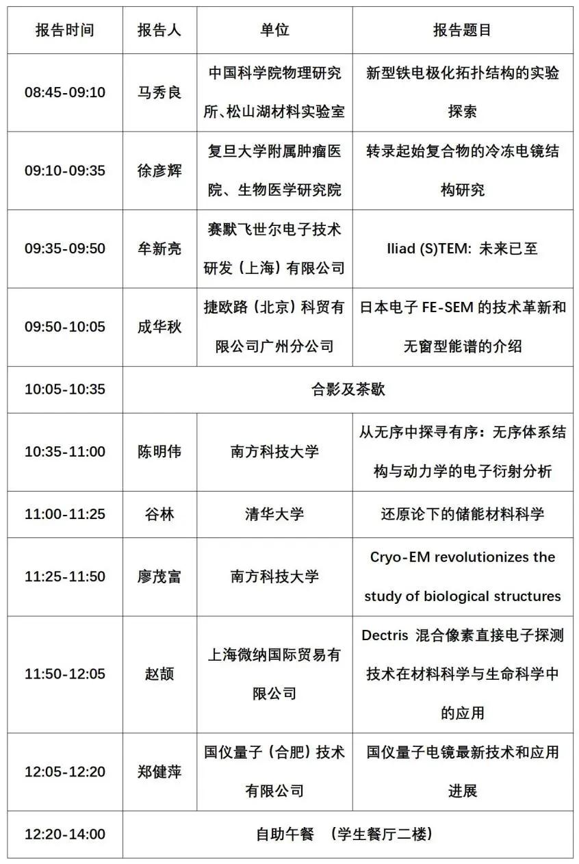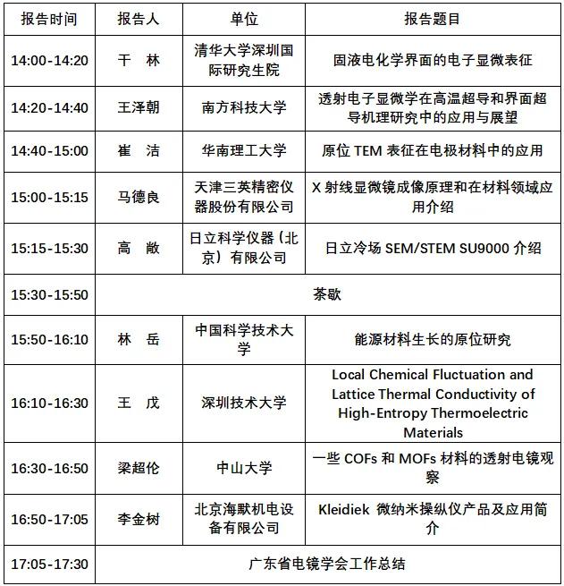 為推動廣東省電子顯微分析技術的發(fā)展,加強電子顯微分析工作者的學術交流與合作,提高自主創(chuàng)新能力,提升電子顯微鏡管理和應用水平,廣東省電子顯微鏡學會定于2024年12月15-16日在南方科技大學舉辦“廣東省電子顯微鏡學會2024年學術年會”。誠摯歡迎電鏡領域的專家學者積極參會。 一、組織架構 主辦單位:廣東省電子顯微鏡學會 承辦單位:南方科技大學物理系、南方科技大學冷凍電鏡中心 二、會議時間及地點 會議時間:2024年12月15-16日(15日報到,16日全天會議) 會議地點:南方科技大學理學院大樓 三、會議總日程 四、會議報告 主會場 南科大理學院1142報告廳 分會場一:電鏡方法學與顯微技術 南科大理學院P1078報告廳 分會場二:電鏡在材料領域的應用 南科大理學院1142報告廳 分會場三:電鏡在生物領域的應用 南科大理學院C1038報告廳 五、會議直播 本次會議主論壇及材料電鏡分會場設有直播,直播二維碼: 六、入校報備 為確保大家順利入校參會,請務必于12月14日17:00前,掃描下方二維碼提交入校申請,邀請碼:KE93EX。會務組將統(tǒng)一處理入校報備事宜,12月15-16日可以憑小程序生成的二維碼進出校園。 【溫馨提醒】校內停車位緊張,建議步行入校參會。如需自駕,請在入校報備小程序中填寫車牌號,并從1號門或2號門進入校園。 七、會務組聯系方式 劉曉燁(總統(tǒng)籌、展商): 0755-88018200 liuxy6@sustech.edu.cn/15815561162(僅限微信) 劉亞磊(住宿/餐飲/交通): 0755-88018203 liuyl2021@sustech.edu.cn 陳英(入校申請、安全防控): 0755-88015941 cheny2020@sustech.edu.cn 梁曉璐(報到注冊、會場服務): 0755-88018259 liangxl@mail.sustech.edu.cn