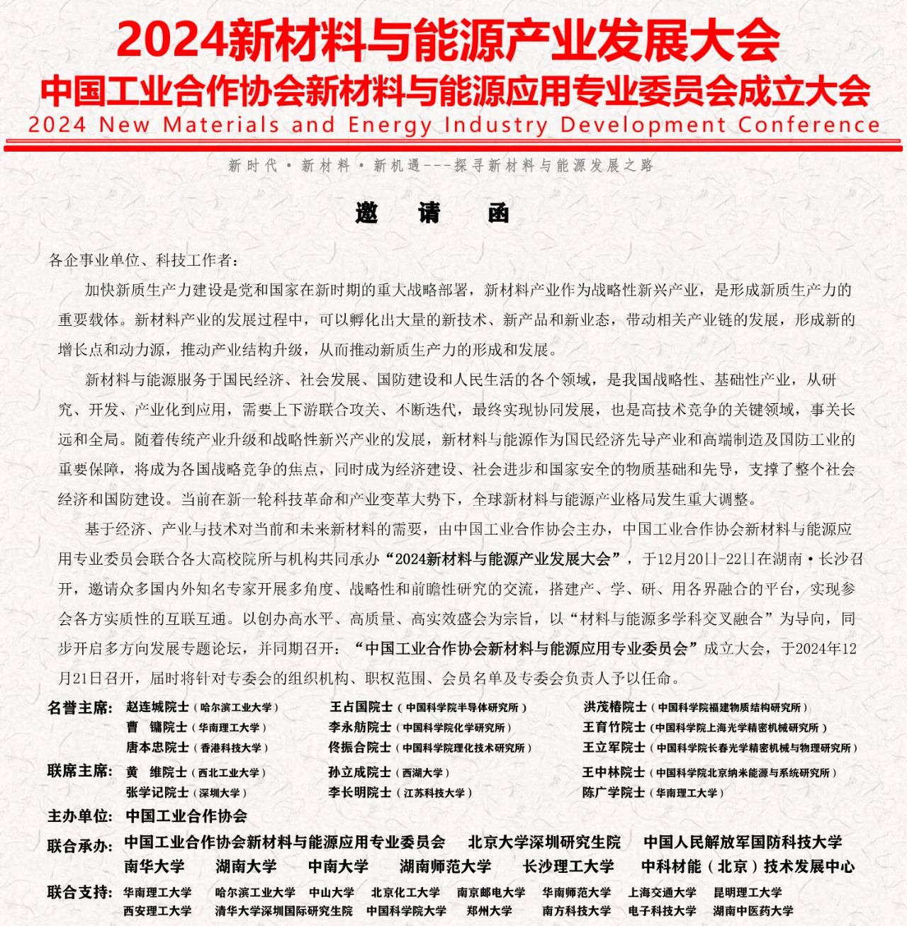 【行業(yè)會(huì)議】2024新材料與能源產(chǎn)業(yè)發(fā)展大會(huì)會(huì)議通知