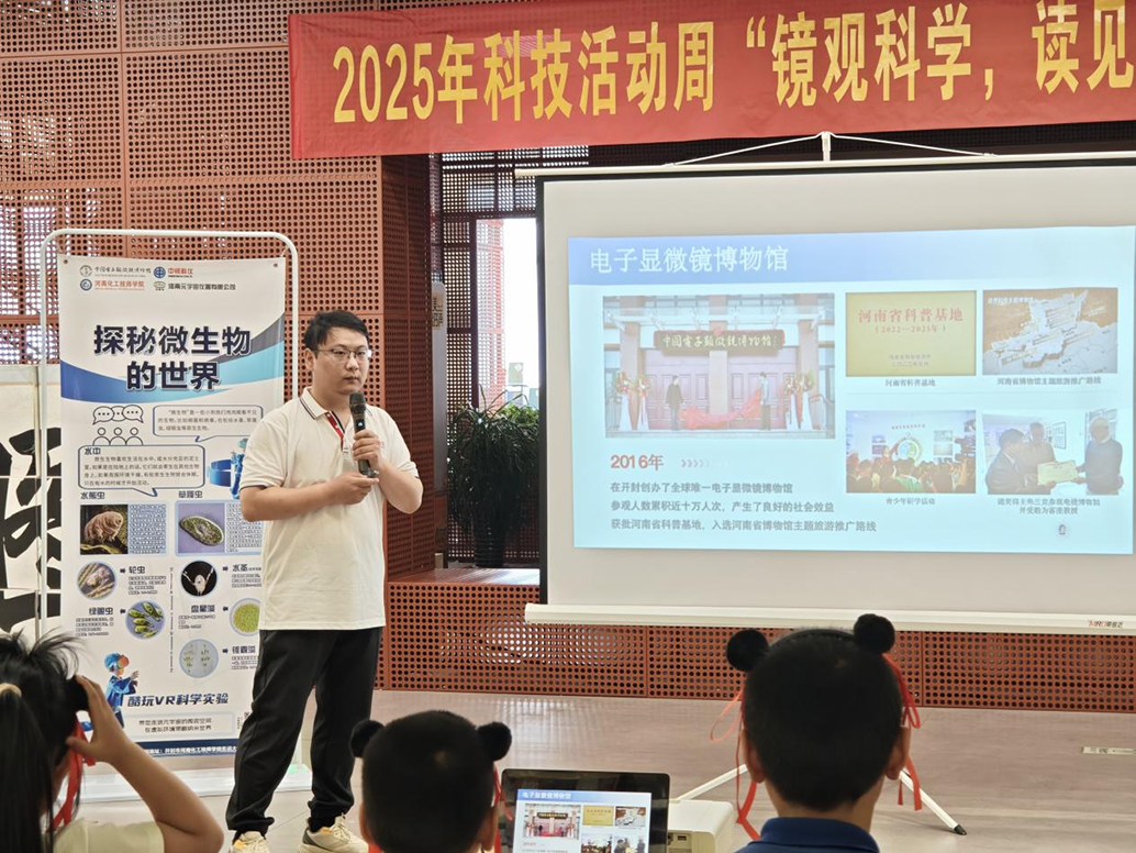 為提升公眾科學(xué)素養(yǎng),營造“人人愛科學(xué)、處處學(xué)科學(xué)、時時用科學(xué)”的濃厚氛圍。2025年科技活動周首日(5月24日)河南中鏡科儀科技有限公司聯(lián)合開封市新華書店、開封中鏡科儀職業(yè)技能培訓(xùn)學(xué)校、河南元宇宙儀器有限公司在開封市新華書店,開展“2025年科技活動周‘鏡觀科學(xué),讀見未來’科普閱讀分享會”活動。原開封市交通運輸局正縣級調(diào)研員、微束科技集團顧問薛勇,中鏡科儀集團副總經(jīng)理王萍,河南元宇宙儀器有限公司副總經(jīng)理郭芳銘,開封中鏡科儀職業(yè)技能培訓(xùn)學(xué)校教務(wù)處主任趙勝藍(lán),中小學(xué)生及社會人員約200人次共同參與了此次活動?;顒佑芍戌R科儀教育部郭珊主持。 2025年科技活動周‘鏡觀科學(xué) 讀見未來’科普閱讀分享會合影 王萍在致辭中表示,活動旨在以“鏡”為媒傳遞科學(xué)精神,通過光學(xué)及電子顯微鏡知識講解、虛擬電子顯微鏡博物館體驗,引領(lǐng)公眾探索微觀世界;以書為橋賦能成長,將科學(xué)知識與閱讀深度融合;以責(zé)為基共建科普生態(tài),整合資源打造多元科普平臺?!翱茖W(xué)從來不是高墻內(nèi)的專屬,而是每個人觸手可及的探索之旅。” 王萍致辭 郭芳銘化身活動的引路人,對本次活動的精彩內(nèi)容進(jìn)行了細(xì)致入微的解讀。為構(gòu)建知識共享的溫暖港灣,激發(fā)大眾對閱讀與科學(xué)探索的深層思考,中鏡科儀匠心打造了第十四屆 “中鏡科儀杯” 讀書分享活動。與此同時,她著重介紹了令人矚目的虛擬電子顯微鏡博物館VR體驗活動。該項目巧妙運用三維重建交互、碰撞檢測等前沿元宇宙技術(shù),構(gòu)建起一個虛實交融的微觀世界。參與者只需戴上VR眼鏡,便能開啟一場身臨其境的探秘之旅,感受微觀世界的無窮魅力。 郭芳銘介紹本次活動 趙勝藍(lán)帶來“從眼觀世界到電鏡探秘:認(rèn)識途徑的飛躍之旅”主題講座。趙勝藍(lán)憑借扎實的專業(yè)知識與生動的案例,深入淺出地講解了電子顯微鏡的工作原理、前沿應(yīng)用及科學(xué)研究中的關(guān)鍵作用。讓晦澀的科學(xué)理論變得通俗易懂,激發(fā)了聽眾對微觀科學(xué)的濃厚興趣。 科普主題講座 在自由體驗環(huán)節(jié),VR體驗區(qū)排起長隊,在菲泰姆團隊工作人員的帶領(lǐng)下,孩子們通過VR(虛擬現(xiàn)實)眼鏡,身臨其境地在虛擬電子博物館中穿梭,家長與科技愛好者也紛紛參與其中,感受著電子顯微鏡的奇妙以及科技帶來的震撼?,F(xiàn)場充滿對科學(xué)探索的熱情。 自由體驗環(huán)節(jié)現(xiàn)場 此次科普閱讀分享會以創(chuàng)新形式、多元內(nèi)容打破科學(xué)傳播壁壘,將閱讀文化與前沿科學(xué)知識深度融合,不僅彰顯了中鏡科儀在科普領(lǐng)域的責(zé)任擔(dān)當(dāng)與創(chuàng)新實力,更契合國家提升全民科學(xué)素養(yǎng)、推動科技自立自強的發(fā)展戰(zhàn)略,為科普事業(yè)高質(zhì)量發(fā)展與國家科技水平提升注入強勁動力。