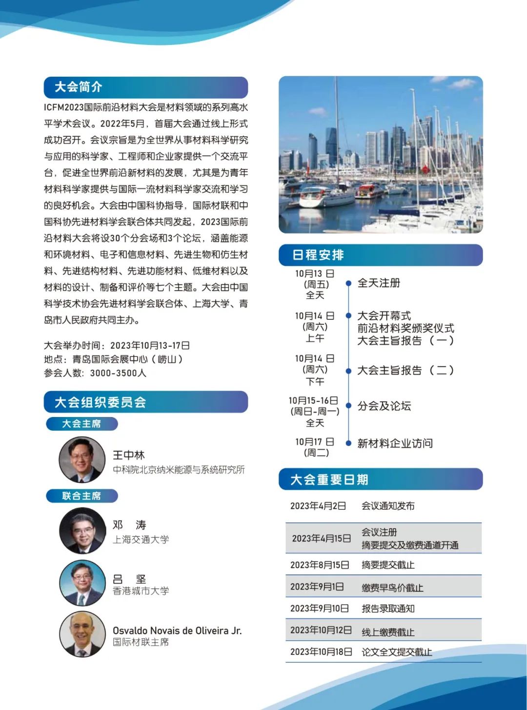 【行業(yè)會(huì)議】2023國(guó)際前沿材料大會(huì)通知
