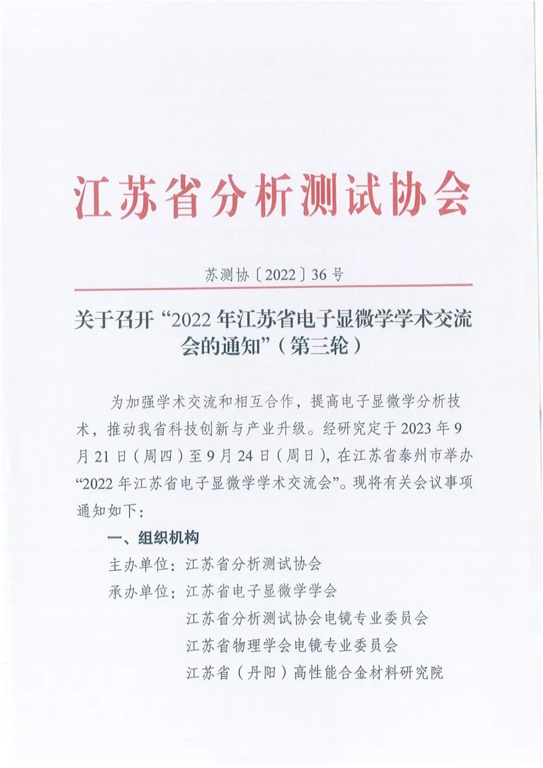 【行業(yè)會議】2022年江蘇省電子顯微學學術交流會通知(第三輪)