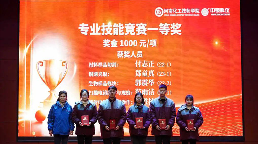 中鏡科儀集團(tuán) 為學(xué)科競(jìng)賽獲獎(jiǎng)學(xué)生頒發(fā)獎(jiǎng)金 深化校企合作,助力培育人才 競(jìng)賽前期,各專(zhuān)業(yè)教研室及任課老師精心組織,認(rèn)真準(zhǔn)備,無(wú)論是制定評(píng)分標(biāo)準(zhǔn),準(zhǔn)備儀器、試劑和耗材,還是組織學(xué)生選拔考核,每一項(xiàng)工作都一絲不茍,力求做到精益求精。 競(jìng)賽過(guò)程中,裁判老師認(rèn)真執(zhí)裁,公平公正,選手們專(zhuān)心致志,無(wú)論在理論還是實(shí)操環(huán)節(jié),都展現(xiàn)出了實(shí)驗(yàn)技術(shù)學(xué)院學(xué)生的專(zhuān)業(yè)風(fēng)采。 經(jīng)過(guò)緊張激烈的角逐,本次競(jìng)賽月活動(dòng)圓滿(mǎn)結(jié)束。根據(jù)獎(jiǎng)項(xiàng)設(shè)置比例,共評(píng)出一等獎(jiǎng)13人,二等獎(jiǎng)20人,三等獎(jiǎng)30人。 為激勵(lì)更多莘莘學(xué)子奮發(fā)進(jìn)取。在中鏡科儀集團(tuán)2023年度表彰大會(huì)暨2024年新年聯(lián)歡會(huì)中,中鏡科儀集團(tuán)校企合作負(fù)責(zé)人董保杰和實(shí)驗(yàn)技術(shù)學(xué)院院長(zhǎng)魏葆婷共同為電鏡專(zhuān)業(yè)獲獎(jiǎng)學(xué)生頒發(fā)獲獎(jiǎng)證書(shū)和獎(jiǎng)金。 專(zhuān)業(yè)技能競(jìng)賽頒獎(jiǎng)現(xiàn)場(chǎng) 通過(guò)此次技能競(jìng)賽月活動(dòng),不僅加強(qiáng)了學(xué)生對(duì)知識(shí)的掌握,也提升了同學(xué)們的專(zhuān)業(yè)技能水平,同時(shí)能夠增強(qiáng)學(xué)生對(duì)專(zhuān)業(yè)的認(rèn)可度,培育技能學(xué)習(xí)的熱情,充分展現(xiàn)實(shí)驗(yàn)技術(shù)學(xué)院學(xué)生精益求精的工匠精神。 中鏡科儀將攜手河南化院,在人才培養(yǎng)、科技創(chuàng)新、成果轉(zhuǎn)化、產(chǎn)教融合等方面繼續(xù)加強(qiáng)合作,深耕育訓(xùn)結(jié)合,培養(yǎng)出更多“品質(zhì)優(yōu)秀、技能卓越”的電鏡人才,為電鏡行業(yè)發(fā)展貢獻(xiàn)力量。為進(jìn)一步提高學(xué)生的技能素質(zhì),增強(qiáng)學(xué)生的動(dòng)手能力,形成以賽促教、以賽促學(xué)的學(xué)習(xí)氛圍,實(shí)驗(yàn)技術(shù)學(xué)院于2023年12月開(kāi)展了為期一個(gè)月的技能競(jìng)賽月。