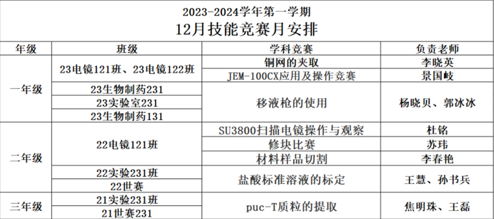 本次技能競(jìng)賽月共開(kāi)展了8個(gè)項(xiàng)目,競(jìng)賽項(xiàng)目覆蓋實(shí)驗(yàn)技術(shù)學(xué)院全體學(xué)生。競(jìng)賽項(xiàng)目有:銅網(wǎng)的夾取、JEM-100CX應(yīng)用及操作競(jìng)賽、移液槍的使用、SU3800掃描電鏡操作與觀察、修塊比賽、鹽酸標(biāo)準(zhǔn)溶液的標(biāo)定、puc-T質(zhì)粒的提取、材料樣品切割。
