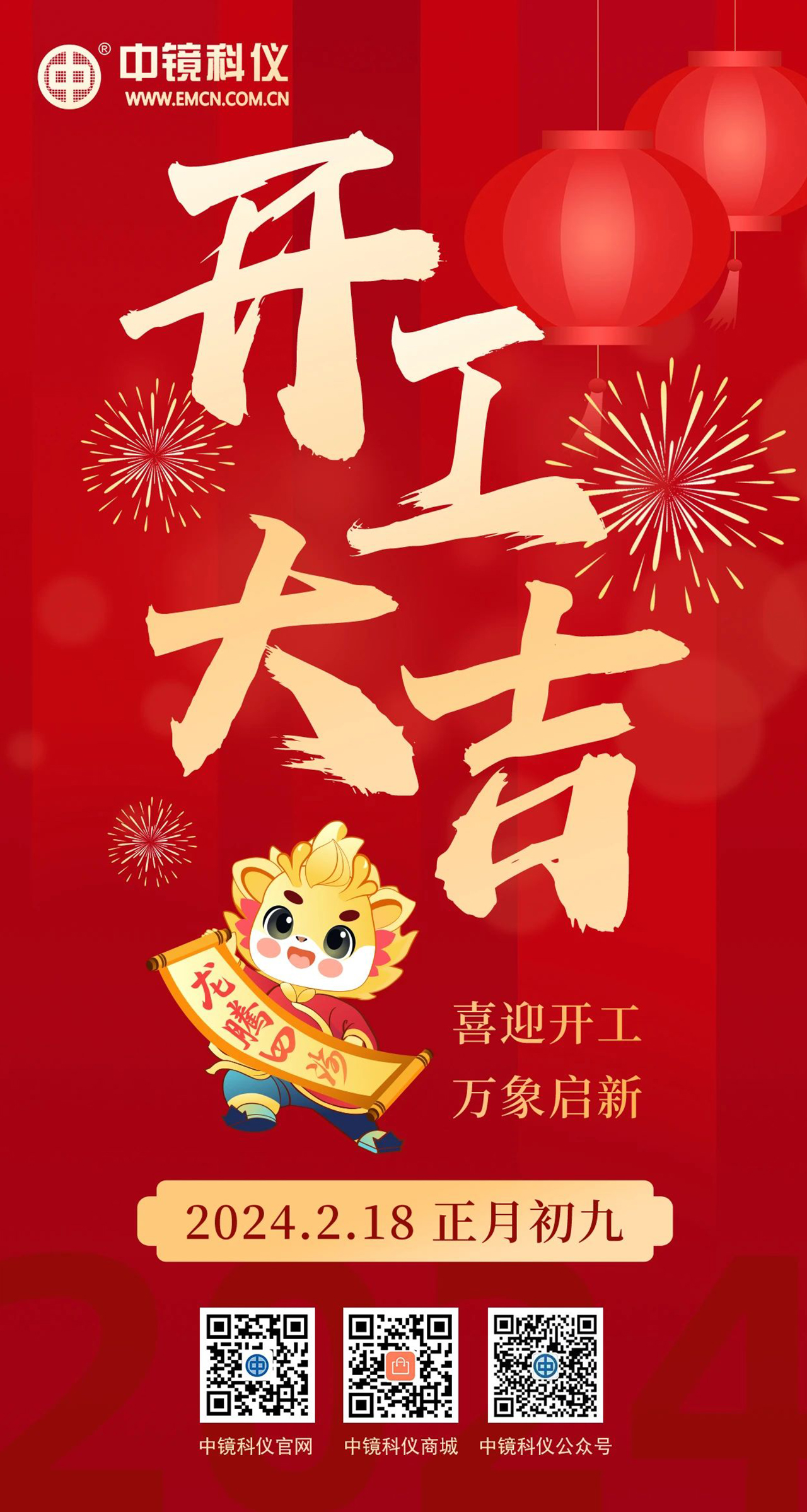 龍年添彩,新歲啟工!中鏡科儀祝大家開工大吉!