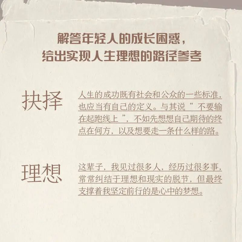 免費(fèi) 贈(zèng)書 為什么要閱讀? 因?yàn)槊恳槐緯枷褚簧热我忾T 想去哪里,都由你自己決定 無法經(jīng)歷的人生,書籍會(huì)帶你相遇 叮!請(qǐng)查收這份「驚喜禮遇」 中鏡科儀贈(zèng)書活動(dòng)來啦! 喜歡的書友千萬別錯(cuò)過! (文末有驚喜) 《自我突圍》 向理想前進(jìn)! 西湖大學(xué)校長(zhǎng)、中國(guó)科學(xué)院院士 作者簡(jiǎn)介 施一公 1967年出生于河南鄭州,生物學(xué)家,西湖大學(xué)首任校長(zhǎng),中國(guó)科學(xué)院院士,美國(guó)國(guó)家科學(xué)院外籍院士,美國(guó)藝術(shù)與科學(xué)院外籍院士。 1989年獲清華大學(xué)生物科學(xué)與技術(shù)系學(xué)士學(xué)位,1995年獲美國(guó)約翰斯·霍普金斯大學(xué)分子生物物理學(xué)博士學(xué)位,1998—2008年歷任美國(guó)普林斯頓大學(xué)分子生物學(xué)系助理教授、副教授、教授、講席教授,2008—2018年全職回到母校清華大學(xué)任教,曾任副校長(zhǎng)。 內(nèi)容簡(jiǎn)介 2008年,正處于事業(yè)上升期的施一公放棄普林斯頓大學(xué)終身教職,全職回母校清華大學(xué)發(fā)展生命學(xué)科,在海內(nèi)外引起較大關(guān)注。2018年,他辭去清華大學(xué)副校長(zhǎng)職務(wù),全力創(chuàng)辦西湖大學(xué)。 他在56年的人生歷程中,總是做出讓大多數(shù)人難以理解的抉擇。是什么促使他一次次突破自我?如何發(fā)揮理想的力量,實(shí)現(xiàn)人生理想的路徑又是什么?相信讀者可以在這本書中找到答案。 這是一本關(guān)于成長(zhǎng)、求學(xué)、教育、家庭、友誼、理想之書,既寫給自己,也寫給教育科研工作者,更是寫給青年學(xué)子,在追求理想的道路上步履不停,共同前行。 名人推薦 一個(gè)有血有肉、有情有義、有膽有識(shí)、志懷高遠(yuǎn)、行必有果的一公躍然紙上。做人當(dāng)如施一公! 韓啟德——中國(guó)科學(xué)院院士、中國(guó)科學(xué)技術(shù)協(xié)會(huì)名譽(yù)主席 這本書可以說是西湖大學(xué)創(chuàng)校校長(zhǎng)的自傳,我們能從書中讀到新時(shí)代中國(guó)知識(shí)分子的內(nèi)心世界。 楊振寧——諾貝爾物理學(xué)獎(jiǎng)獲得者、中國(guó)科學(xué)院院士 《自我突圍》帶我們進(jìn)入了一個(gè)真實(shí)的施一公的世界,向我們展示了一個(gè)現(xiàn)實(shí)的理想主義者的自我突圍,一個(gè)當(dāng)代中國(guó)科學(xué)家的人生觀。 錢穎一——清華大學(xué)文科資深教授、經(jīng)濟(jì)管理學(xué)院院長(zhǎng)(2006-2018年) 相識(shí)一公十?dāng)?shù)年,亦兄亦友,愈久愈知,尤佩其堅(jiān)韌。一公在我心中是一位奮進(jìn)不息的理想主義者,這種理想主義體現(xiàn)在他的科研取向,也貫穿于他看待人生的視角。從他的成長(zhǎng)經(jīng)歷中,我們不僅可以從多個(gè)層面了解其人,更可以感知當(dāng)代中國(guó)科學(xué)家的探索精神和執(zhí)著追求。 潘建偉——中國(guó)科學(xué)院院士、中國(guó)科學(xué)技術(shù)大學(xué)常務(wù)副校長(zhǎng) 一公校長(zhǎng)的這本書既是一部成長(zhǎng)史,也是一部思想史,成長(zhǎng)的故事豐滿,思想的歷程精彩,堪稱一劑擺脫迷茫焦慮、實(shí)現(xiàn)自我驅(qū)動(dòng)的良藥,學(xué)生、家長(zhǎng)和教育工作者讀了,一定會(huì)在有意思和有意義中收獲滿滿。 劉彭芝——中學(xué)特級(jí)教師、人大附中、人大附中聯(lián)合總校原校長(zhǎng)、現(xiàn)名譽(yù)校長(zhǎng) 西湖大學(xué)寄托了太多人對(duì)更好教育的理想,作為領(lǐng)頭人的施一公也是一位理想主義者,但西湖大學(xué)畢竟剛剛出發(fā)不久,它的未來會(huì)是什么樣?或許我們可以從過去到現(xiàn)在的施一公身上找到一些答案,這本書就是一把鑰匙。 白巖松——央視主持人、資深新聞評(píng)論員 凡益之道,與時(shí)偕行。與一公結(jié)識(shí)已久,他的經(jīng)歷為不忘初心、砥礪前行、創(chuàng)新探索做了生動(dòng)的注腳。這本書的心路歷程,相信能夠鼓勵(lì)更多年輕人點(diǎn)亮心中燈塔,不斷突破自我,玉汝于成,在成長(zhǎng)路上有所收獲。 張磊——高領(lǐng)集團(tuán)創(chuàng)始人兼首席執(zhí)行官 聯(lián)系我們 公司官網(wǎng):www.www.jnzcly.com 免費(fèi)熱線/企業(yè)QQ:400 001 9621 市場(chǎng)部郵箱:zjky@www.jnzcly.com 官方商城:http://www.emcn.net.cn/ 地區(qū)負(fù)責(zé)人聯(lián)系方式 北京地區(qū):張經(jīng)理 18642002287 南京地區(qū):鄭經(jīng)理 15050567596 廣州地區(qū):鄭經(jīng)理 13724052586 西安地區(qū):馬經(jīng)理 13324587366 沈陽(yáng)地區(qū):王經(jīng)理 15140221479 鄭州地區(qū):唐經(jīng)理 15237816868