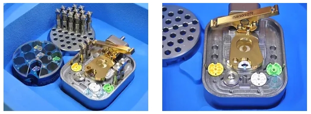保護(hù)罩頂部可翻轉(zhuǎn)式的卡槽可與NanoSoft的冷凍鑷子和其他Vitrobot鑷子兼容,采用磁鐵接合的方式,提供更安全的附著。